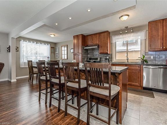 A MUST SEE! This house (and Workshop!) is sure to impress with its extensive updates including open concept fully renovated kitchen with large island, private balcony off master bedroom, 4 bedrooms, 2 full bathrooms, fully finished basement, deck, and carpet free living throughout. Lots of living space for a family yet only a few stairs to each level. This home is in move in condition with updated roof (2020), Windows (all 2014) and so much more! 200 amp electrical service. 32 x 26 WORKSHOP fully insulated with concrete floor + 100amp breaker panel. A handyman's dream! Everyone will love the large, private in town lot. All appliances and bar stools included. No rentals (Water Heater & Softener owned)