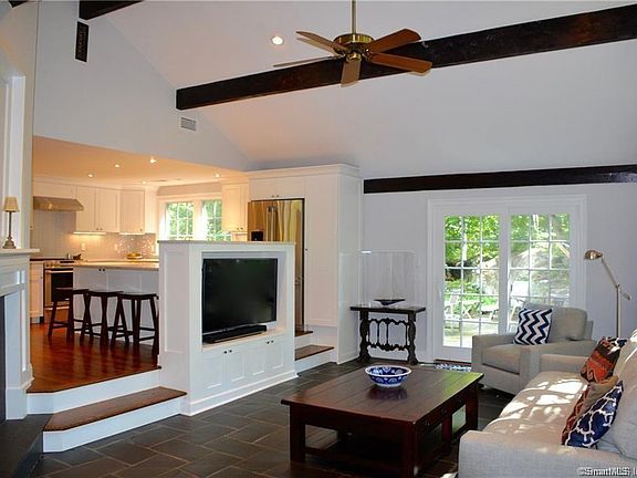 Escape to this beautifully renovated home on almost half an acre, less than a mile to train, town and beach. The open floor plan and completely renovated kitchen make entertaining easy. Enjoy the vaulted ceilings in the family room, with heated floors, while sitting by the fire or watching a movie. The fireplace is double sided so you don't have to leave the fire while eating dinner. The flow continues outside to the private back yard, with two tiered terraces where you can sit around the fire pit, grill for friends or just enjoy a quiet moment, soaking up the nature around you. The furnished lower level walks out to the lower deck, further facilitating the flow. The primary bedroom has an en-suite bathroom, featuring heated floors and a steam shower. Two additional bedrooms and the second bathroom are on the same floor.