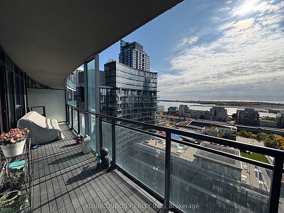 Move-in ready luxury awaits in this fully furnished and professionally cleaned 1-bedroom + den suite (~700 sq ft) at CityPlace Waterfront, perched on a high floor with an expansive south-facing balcony offering breathtaking lake views and front-row seats to planes taking off and landing at Billy Bishop Airport while you sip your morning coffee; inside, enjoy laminate floors (carpeted bedroom), floor-to-ceiling windows flooding the space with natural light, a sleek modern kitchen with granite counters, custom backsplash and pot lights, plus a den equipped with massive built-in cloth organizers, one included locker, and appliances updated in early 2025-including fridge, washer, and dryer; indulge in resort-style amenities including24-hour concierge, gym, rooftop pool, party and movie rooms, guest suites, yoga/dance studio,BBQ terrace, sauna and hot tub-all just steps from TTC, Toronto Island, parks, the Financial and Entertainment Districts, with The Well right across the street; bring your suitcase and start living the downtown dream today!
