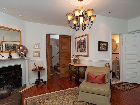 This luxuriously elegant turn of the century 3 story corner twin has been meticulously restored and renovated. This home dates back as far as 1898 featuring original moldings and wood work, stained glass windows and chair rail through out while perfectly blending the amenities of new construction. Enter central foyer with working fireplace, crown molding,gleaming original hardwood floors, ceiling medallion. The central foyer leads to the living room with recessed lighting, original pocket doors, fireplace, ceiling medallion; there is a full bath off the living room. The foyer also leads to the formal dining room which also has hard wood floors, ceiling medallion, chair rail, pocket doors. Kitchen features 4 pc Energy Star S/S Whirlpool package, soft pull cabinetry, reverse osmosis water system, granite counters. There is a deck overlooking yard off kitchen with half bath. The fenced yard has a cement parking pad. Second and third floors feature 3 carpeted bedrooms, 2 of the bedrooms on second floor have ceiling medallions. hall bath on each floor. This home has newer (5yrs) electric panel with new wiring, sub-panel on every floor with circuit breakers, newer roof (5yrs) new plumbing with drains and switches, new windows, 2 hot water heaters (1gas 1 electric) boiler with all new air vents, trap valves. There is hard wood flooring under carpeting. First and second floors have 9' ceilings. There is a mix of original and custom millwork through out house. New railings and concrete on wrap around porch.