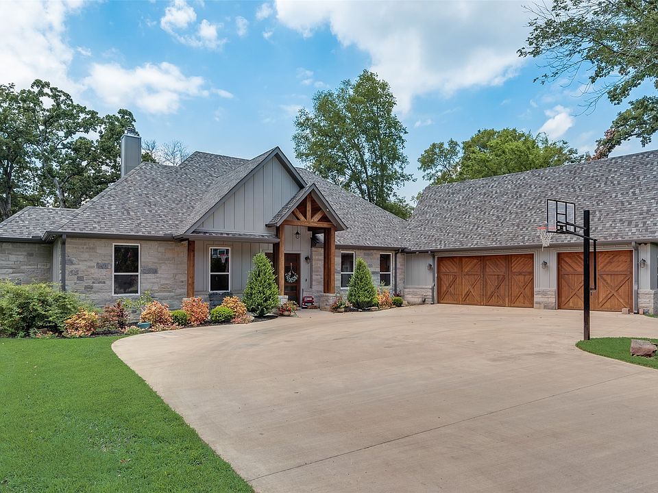 Discover this stunning custom home build that features a 4 bedroom, one of which is an artisan bunk room, 4.5 bath, a fantastic bonus room, and a 3 car garage. Open floor plan seamlessly connects the living, dining, and kitchen areas, creating an inviting and spacious atmosphere. Kitchen is a chef's dream and offers ample counter space, breakfast area, large island, extra cabinetry, ice maker, double oven, built-in cooler, under cabinet microwave, walk-in pantry and more. Living room has wall to wall windows overlooking a breathtaking view of the serene waters. Step out onto a charming covered patio with retractable screens which is perfect for entertaining friends and family with an outdoor kitchen including a bar top and seated dining area overlooking a perfect location to socialize between the fire pit, swim platform, boat, and fishing boat dock. It's a boater paradise with a boat house, electric boat lift and cover. Ready to make new memories, make this your vacation retreat!