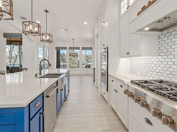 Experience the ultimate in lakeside luxury with this stunning 4-bedroom, 4.5-bathroom waterfront home, designed for those who love to entertain and unwind. The heart of the home is an expansive open floor plan where the living and dining areas feature breathtaking wall-to-wall windows, offering an unobstructed view of the water. Directly inside the front door you will find the office area for those who work from home. The gourmet kitchen is a chef’s dream, equipped with a KitchenAid gas cooktop, double ovens, a wine fridge, and a dedicated ice maker. Three of the bedrooms serve as a private retreat with their own ensuite bath, a spacious bunk room is directly adjacent to a hall bathroom. A massive primary suite and ensuite bath features double vanities, a soaking tub, and a custom-designed closet. Open the window coverings in the primary suite and view the lake in the mornings from bed. Above the 3-car garage, a large bonus room—currently a game room—adds the perfect space for recreation, while the impressive utility room offers a sink, folding area, and extra fridge for ultimate convenience. The outdoor amenities are equally spectacular, featuring a covered patio with retractable screens, a full outdoor kitchen, and a cozy fire pit for lakeside evenings. No need to worry about the electricity going out with a GENERAC connected to the home! The large storage shed allows room for lawn tools, boat toys and comes with the refrigerator to keep all the fish you catch fresh until it's time to eat! Walk down to the private dock to swim, fish, or launch your boat from the electric lift, which comes complete with a protective cover. Best of all, everything in the home conveys with the sale (there are a few things in exclusions) allowing you to start living the lake life the moment you receive the keys!