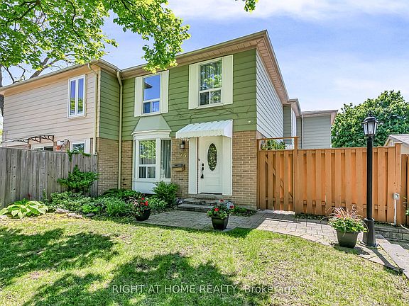 END UNIT Freehold Townhouse No Maintenance Fees! Feels Just Like a Detached Home. Welcome to this beautifully updated 3-bedroom, 2-bathroom home with no maintenance fees! Featuring a bright, modern eat-in kitchen and upgraded flooring throughout, this end unit offers the space and comfort of a detached home. The fully finished basement with a separate entrance provides incredible flexibility, perfect for extended family, extra living space, or potential rental income. Step outside to your private backyard, ideal for family gatherings, summer BBQs, and complete with a custom shed for added storage. Parking for 2 cars on the driveway. Located in a highly desirable, family-friendly neighbourhood, just a short walk to top-rated schools, parks, splash pad, community centre, pool, ravines, scenic trails, shopping, and public transit and new subway coming soon! Move-in ready and waiting for you don't miss this rare opportunity!