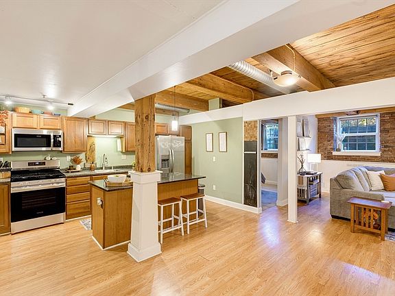 Charming verstile condominium in great condition. Featuring a spacious open floor plan with kitchen island thats perfect for entertaining or casual dining. Exposed beams throughout give it a vintage charm while keeping a warm and inviting atmosphere. Big bedroom with double closet, large bathroom and in unit laundry. This unit has a second room off the main living area that can be used as a bedroom or office. Natural gas heat and Central air. Move in ready in fantastic location, walking distance from all that downtown Amesbury offers; shops, dining, bike paths, trails, Cedar Hill Farm and only a few miles to routes 95 and 495. There is an elevator, extra storage area and terrific outdoor common space with grills, gazebo and Clarks Pond. Move in condition with the special assessment paid in full by seller. Come See! Open Houses on Saturday Nov. 8th and Sunday Nov. 9th from 12-1:30pm.