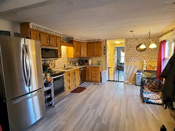12000 - Many updates have been done to this manufactured home. Since 2020 there has been a metal roof put on, new doors, new windows, new flooring, new furnace and some new wiring. 32' x 20' attached garage and all this is sitting on 2.88 private acres with a long driveway off the street. Perennial gardens, fenced yard for pets and kids and located next to Whistle Stop recreational trail. Close to shopping, Wilson Lake, Kineowatha Park, the hospital and only a half hour from Mount Blue State Park and Webb Lake. Come take a look.