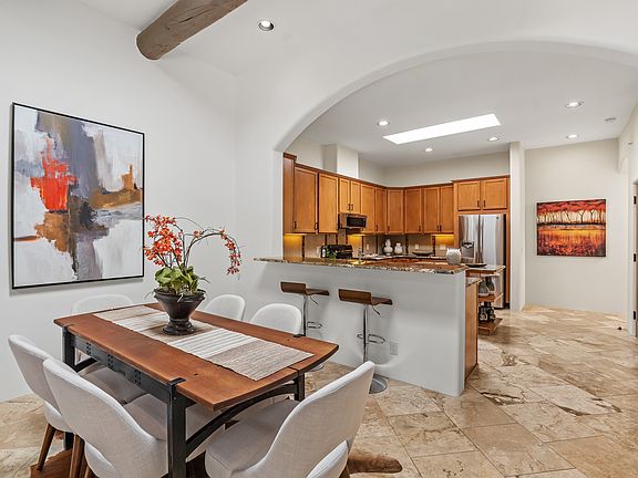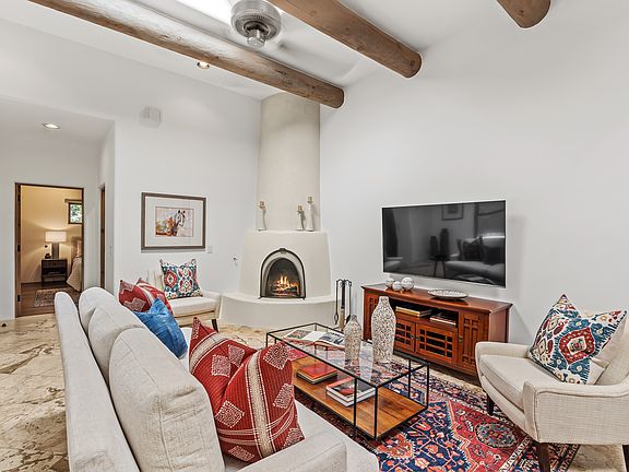 Welcome to your enchanting Santa Fe retreat — a refined lock-and-leave courtyard residence crafted by Casas De Vistas. This 2-bedroom, 2-bath home effortlessly blends timeless Southwestern charm with modern comfort, offering a serene lifestyle all on one level and just minutes from the heart of Santa Fe. Step through private gates into a sun-drenched courtyard, where covered portals invite morning coffee, sunset cocktails, and peaceful moments of reflection. Inside, warm French doors open to a living space that radiates character — soaring beamed ceilings, a cozy kiva fireplace, and cool travertine stone floors set the stage for relaxed luxury. The chef’s kitchen is both functional and beautiful, with granite countertops, artful tile backsplashes, and sleek stainless steel appliances — a perfect space to create and entertain. Both bedrooms are private sanctuaries with elegant tile floors, while the primary suite offers a tray ceiling and French doors that open directly to your secluded courtyard oasis. A spacious two-car garage adds practicality, and a fenced backyard provides the perfect space for your four-legged companions to roam safely. Whether you're seeking a full-time home or a seasonal escape, this Santa Fe gem offers low-maintenance luxury and authentic style in one of the region’s most desirable communities. Here you will find 13 miles of walking trails, Tennis, pickle ball and Basket ball court, many parks throughout, including one with a playground, acres of open space with views and a coffee shop on the plaza. On site HOA Management. Come explore the active lifestyle this new urbanist community has to offer.