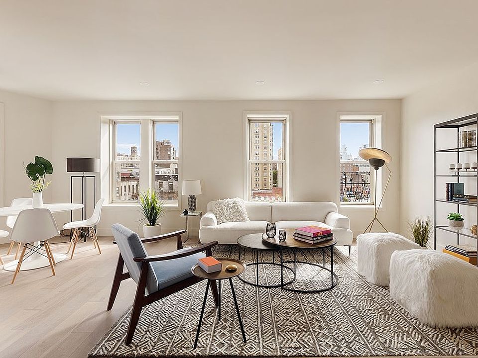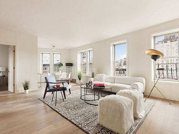 Welcome to 25 Charles Street #6A, a fully reimagined two-bedroom home that can be flexibly configured into three bedrooms. Spanning nearly thirty feet across its combined living and dining area, this rare West Village sponsor unit offers a seamless, move-in-ready experience-perfect for buyers seeking a renovated, design-forward residence without the hassle of the typical co-op approval process. With nearly nine-foot ceilings, triple exposures, and open city and neighborhood vistas, the apartment is bathed in natural light throughout the day and enjoys stunning penthouse views.