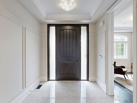 Corner lotCoffered ceilingsCrown mouldingsRich solid-core doorsUpgraded designer kitchenSs refrigerationDouble wall ovens