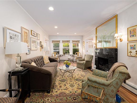 Lovely center hall colonial in Wayland Square Area on quiet one way street. This home is as comfortable as it is elegant. The first floor has a large open living room with granite wood burning fireplace, hardwood floors that opens out onto the enclosed outdoor porch to a very large yard with bluestone patio. The first floor also has an additional den or office space off the living room, dining room, renovated kitchen and half bath and laundry. The second floor is light-filled and spacious with 2 generously sized bedroom, another smaller bedroom or office and full bath. The lower level has plenty of storage and potential for additional living space. Gas heating and central AC. The yard is right next to Constance Witherby Park and the dog park. Walk to Whole Foods, all shops, restaurants and schools! You are just minutes from the bike path, water, and I95/195. Ready for you to move right in!