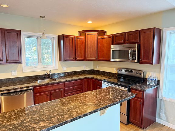 Spacious 4 bedroom, 2.5 bathroom townhouse conveniently located near highways, shopping malls, and restaurants. This home offers three levels of living, starting on the first floor where there is a large open-concept living room, kitchen, and a half bathroom. The elegant kitchen features dark wood cabinets, granite countertops, an island with breakfast bar, and stainless steel appliances. On the second floor, there are two bedrooms and a full bathroom complete with laundry. Additionally, there are two more bedrooms and another full bathroom on the third floor. The unit features modern updates including hardwood floors and central heat/AC. There's also in-unit laundry, lots of storage space, and off-street parking for two cars. Available immediately!