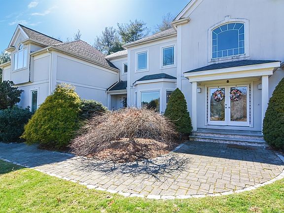 Experience luxury living in this Colonial masterpiece nestled in Southfield Estates. Step through grand double front doors into a marble foyer with a curved staircase and cathedral ceilings. The open layout seamlessly connects the living, kitchen, dining, and great rooms allowing an ideal home for entertaining. The kitchen boasts granite countertops, a double wall oven, and a spacious center island with a wet bar and wine rack. The main level also includes a guest suite with a full bath and private deck, an office with built-in bookcases, and an oversized dining room. Upstairs, find three en-suite bedrooms and a laundry room. In addition, the primary suite offers two walk-in closets, a full bath with a double vanity, and a soaking tub. Ascend to the third level for an oversized guest room with a ¾ bath. Outside, unwind amidst over an acre of privacy, complemented by a tennis court and 3-car garage, providing the finishing touches to this stunning property.