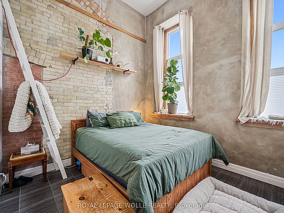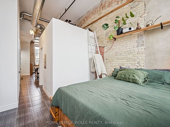 Experience authentic loft-style living steps from the Grand River, restaurants, and cafes. This rare 1-bedroom, 1-bath condo blends heritage character with modern comfort across 620 sq. ft. of thoughtfully designed space. Soaring 14-foot ceilings, 10-foot windows with deep sills, and exposed ductwork showcase the building's industrial roots, while concrete and brick interior walls add timeless texture. The open-concept layout features a unique arched brick alcove in the dining area, granite countertops, stainless steel appliances, in-suite laundry, central air, and in-floor radiant heating. Added conveniences include generous basement storage, a pulley system for bike storage, and one parking space (#27) directly outside the unit. Enjoy a lifestyle surrounded by Galt's best - scenic river trails, local cafes, shops, theatres, and the U of W School of Architecture are all just a short walk away. Available December 1st or January 1st for $1,950/month + utilities.