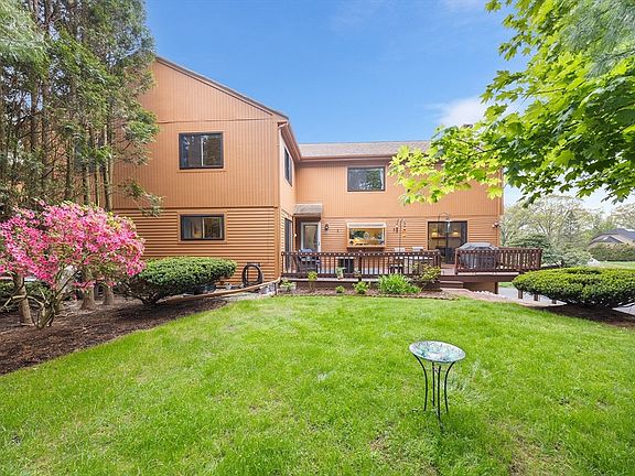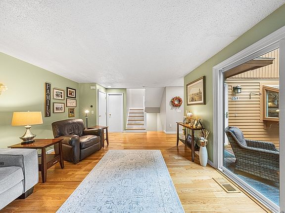 Upon entering, you'll discover beautiful hardwood flooring on the first floor. The kitchen shines with modern stainless-steel appliances & elegant granite countertops and includes a beverage refrigerator plus a bright planter window. Two sliding doors fill the main level with natural light. Key updates include a heating system that's only 6 years old and a 3-year-old hot water tank. The second-floor bedroom has been freshly painted and features new carpeting, while the ensuite bathroom boasts a new vanity and flooring. For added convenience, there's an updated half-bath on the first floor. The living area is enhanced by a lovely wood-burning fireplace with a charming wood hearth. Newer windows throughout enhance energy savings. The lower level offers a finished room. The two-car tandem garage provides ample parking and storage. The garage, heat & air conditioning are all WiFi-enabled. Residents can enjoy community amenities such as an in-ground pool, pickleball/tennis courts, and golf!