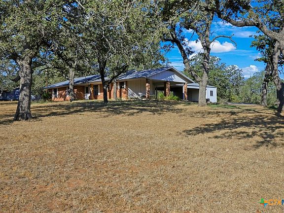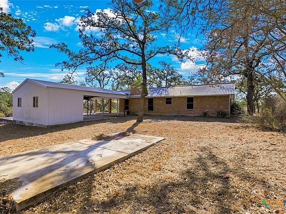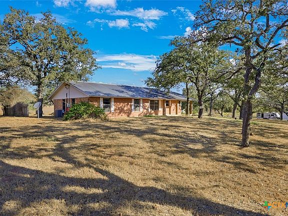 Oak trees, oak trees, oak trees! This well-maintained 3 bedroom, 2 bathroom brick home in the Stockdale ISD offers 1608 sq ft of comfortable living space, sitting on a 2.41 acre corner lot with tons of Oak trees.  Featuring an open-concept living room, dining area, and kitchen, this home is perfect for everyday living and entertaining. The interior includes a mix of carpet and durable ceramic tile flooring, plus a convenient interior utility/laundry room.  The living room has a wood burning fireplace.  Enjoy the ease of a 2-car attached carport and additional outdoor storage room for tools or seasonal items.  With plenty of room to roam and grow, this property offers the ideal blend of space, comfort, and country living with city convenience.  This house is in within 20 minutes of Seguin, LaVernia, or Floresville, all offering grocery stores, dining, and other entertainment.