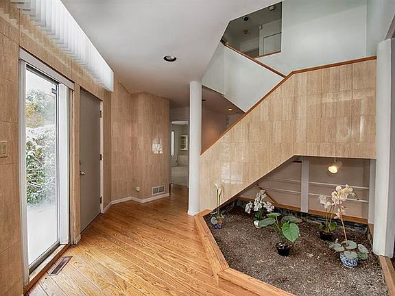 Not your typical contemporary! Designed and built by an architect as his home. Wonderful and unique floor plan that is both open yet cozy. Natural light floods through an abundance of large windows and skylights. Soaring and vaulted ceilings add interest. Owners suite includes a spacious bath, two walk in closets, linen closets, triple transom windows and a private office/dressing room (13x8) with h/w floor, vaulted ceiling and skylight. 2nd and 3rd bedrooms share a Jack n Jill bath. Entrance foyer includes a "plant" area with a three story ceiling. Living and dining rooms are combined. Family room with fireplace opens to breakfast area and kitchen. First floor bedroom with full bath. Laundry room with outdoor access. Spiral staircase to 3rd floor living space or storage. Finished walk out lower level game room. Tremendous storage throughout. Home sits high on the lot providing privacy yet part of a cul de sac neighborhood. New high tech Kerr elementary district. Nice yard.
