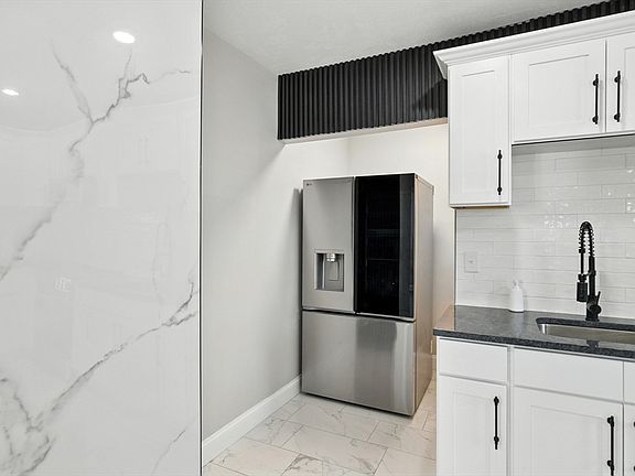 Design details sets this Colonial apart! From the geometric accent wall in the dining room to the modern kitchen and half bath with vertical accent paneling & sleek finishes, every level offers style and function. The first floor includes a spacious living room, updated kitchen w/ white cabinetry, stainless steel appliances, & tile backsplash, dining room with a bold accent wall, and a versatile bedroom or office. Upstairs you’ll find three good sized bedrooms and a full bath with updated tile and fixtures. The finished attic adds two additional rooms, ideal for a home office, playroom, or guest space. All levels feature easy care new flooring, fresh paint, & contemporary touches that bring a move-in-ready feel. Outside, enjoy a patio for entertaining, a two-car garage, and additional off-street parking. With its standout interior features, flexible layout offering 4-5 bedrooms, and updates that blend style with everyday living, this Colonial is ready to welcome its next owner.