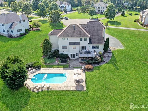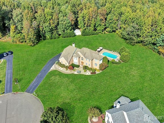 Welcome to 25 Deerfield Trail, a breathtaking residence that offers over 5,000 sqft. of luxurious living space, situated on a premium 1.7-acre lot at the end of a quiet cul-de-sac in desirable South Brunswick. Discover a spacious floor plan featuring 4 bedrooms, 3.5 baths, and a multitude of versatile living spaces. The first floor boasts an inviting office and a stunning library, both of which could easily be transformed into a fifth bedroom to suit your needs. The gourmet kitchen is perfect for entertaining, while the open-concept living areas flow seamlessly. Enjoy year-round comfort with a whole-house air purifier system, and retreat to your luxurious master suite with a spa-like ensuite bath. The walkout finished basement offers additional living space. Step outside to your private backyard oasis a true highlight of the home. Dive into the sparkling swimming pool, unwind in the hot tub, and enjoy complete privacy on this expansive lot, surrounded by lush landscaping. Whether you're hosting a summer BBQ or simply relaxing, this backyard is designed for ultimate relaxation and enjoyment. Additional features include a three-car garage, a premium cul-de-sac location, and ample storage space throughout. With its elegant design, ideal location, and incredible outdoor amenities, 25 Deerfield Trail is the perfect place to call home.