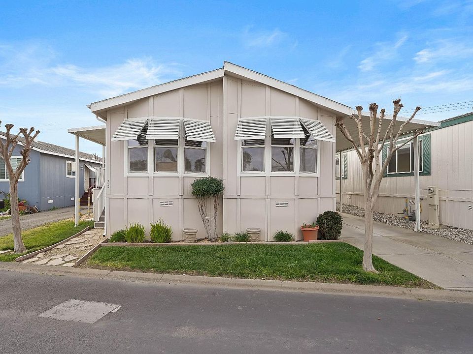 This charming 3 bedroom, 2 bathroom mobile home offers spacious and comfortable living with modern conveniences. The open concept layout features a bright living room that flows seamlessly into your dining area and kitchen, perfect for entertaining. The kitchen is well-equipped with ample cabinet space and modern appliances. The primary suite includes a private bathroom with a walk in shower and a soaking tub, providing a relaxing retreat. Two additional bedrooms offer plenty of space for family, guests, or a home office. A second bathroom ensures convenience for all! The quaint backyard offers a relaxing area complete with a tuff shed for all your storage needs, it even has electrical.