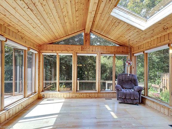 Beautifully maintained, one owner, 3 bedroom, brick bungalow with a metal roof, on a gorgeous ravine lot. This perfect family home is nestled in a quiet mature subdivision that's within walking distance to picturesque Lake Lisgar and the Tillsonburg Community Centre. Walk through the front door to find a large living room with hardwood floors and lots of natural light. Pass through the dining room and kitchen and through the French doors to find yourself in the sun room that will make you feel like you are surrounded in nature. Four walls of windows plus a large skylight will make this your favourite room in the house. Also on the main floor you will find three bedrooms, a full bathroom plus a full bathroom ensuite with walk in shower. The basement has lots of room to spread out with two separate large recreation rooms, a large ravine facing window, gas fireplace, large laundry and storage room, furnace room and cold cellar. Step out onto the large deck and see the beautifully landscaped and private yard and gardens. A walk through the deep ravine lot leads you to small creek and will make you feel like you have transported out into the country.