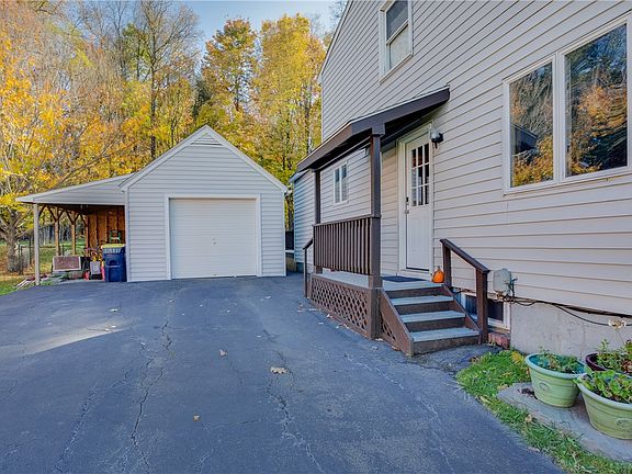 This well maintained and updated home in Sidney combines ample living space inside with desirable exterior features complete with deep front porch, spacious back deck area, and a level and fenced back yard, making it ideal for those looking for a bit more space yet remain within a village setting. Entering the home from the front porch, a cozy double-living area showcases original wood floors, ample natural light, and options for socialization and relaxation. A hallway then connects a potential first floor bedroom or office/hobby space, a full bathroom, and the kitchen. The kitchen also has access from the driveway, boasts updated appliances, plentiful counter and cabinet space, and a tidy eat-in area with sliding door out the the deck area. Following the updated carpets upstairs leads to a small landing and then 4 good sized bedrooms and an upstairs full bath. The basement is half-finished as a play or recreational/bonus space and has a woodstove to help contribute to the literal and figurative warmth of the home. A utility area contains the laundry and more space for storage. Recent updates really help; a newer 200 amp electric service, heat-pump water heater for super efficient hot water, carpets, and 3 zones of air source mini split heat pumps offer heating and cooling efficiency. One main cassette is in the living room, and 2 others are strategically placed in upstairs bedrooms to keep the house comfortable year-round. Outside, the welcoming front porch faces a quiet neighborhood street. A detached single car garage with lean-to addition will get the vehicle out of the elements or offers even more storage space. The backyard is a real gem, with a garden area, Juniper and Lilac and Blueberry bushes, a nice wooded section in the back and ample level areas for lawn games and relaxation around the fire pit. This one offers space, efficiency, and a cozy feeling for those looking for a good sized home set right in Sidney.