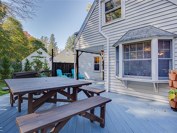 Garden areaAmple natural lightDeep front porchFire pitSpacious back deck areaTidy eat-in areaOriginal wood floors