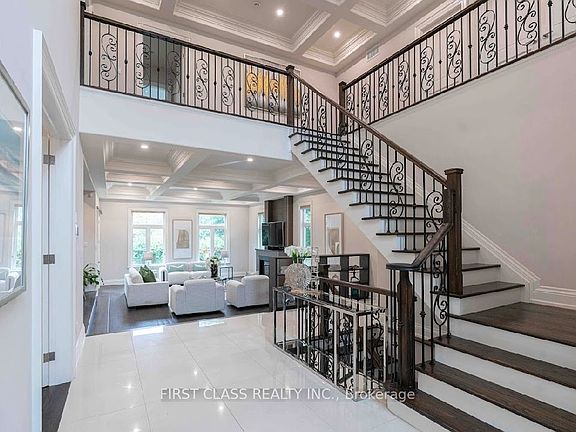 Elegant & Exquisite Custom Home Nestled On A Choice Street, 4322Sf+Fins Bsmt. White Oak Solid Wood Entrance Door, 20 Feet Coffered Ceiling With Plaster Moulding & Stone Ground Floor Foyer, Oak Hardwood Floor Main&2nd Floor ,Pot Lights Through Whole Building, Oak Staircase + Wrought Iron Railing, 11 Feet Great Room, 10 Feet Master&2nd Master, 2 Fireplaces, 2 En-Suite Bathroom With Water Jet& Rain Shower, Terrace... The homeowner spent $120,000 upgrading the backyard pavilion, artificial rockery, pond, and slide.
