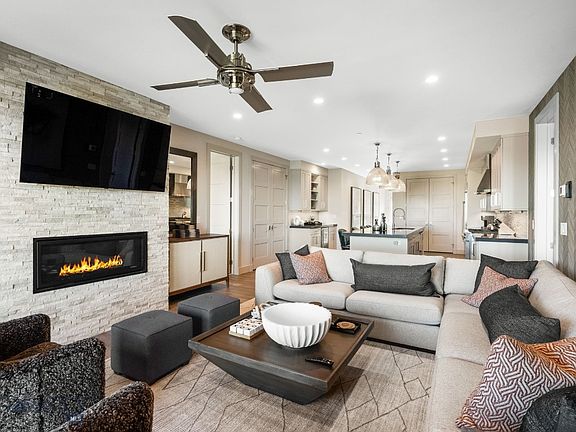 Experience the ultimate in Montana living with this custom-designed walkout Villa, perfectly positioned to capture sweeping views of the golf course, sparkling ponds, and the Tobacco Root Mountains. Inside, every detail has been thoughtfully curated with rich wall treatments, custom window coverings, and high-end finishes throughout. The open-concept living and kitchen area is designed for entertaining, with expansive windows that frame the remarkable scenery & a stone gas fireplace. Two luxurious primary suites each feature private spa-like en suite baths, with one suite opening onto a private patio for a serene retreat. An oversized main patio with built-in gas firepit provides the perfect setting for cozy outdoor gatherings while overlooking the fairways and sunsets. Additional highlights include a large pantry, bar with beverage fridge, beautifully designed powder room, custom closet finishes, upgraded lighting, and refined fixtures throughout. With a lock-and-leave design and unmatched surroundings, this Villa is the perfect blend of luxury and convenience. Just steps away, enjoy Black Bull’s exclusive amenities with an optional Social or Golf membership: a private restaurant, pool, fitness center, championship golf course, and cross-country ski trails. Please inquire for more club membership information. Furnishings, artwork, kitchen items and more are also available separately, please inquire for a true turnkey experience. Some photos are club amenities. Don't miss the Virtual Tour!
