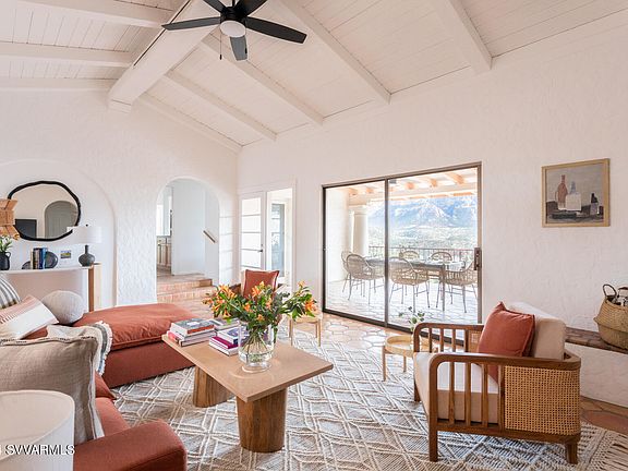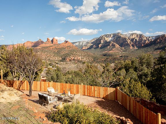 Perched on a quiet cul de sac and boasting DYNAMIC AND PANORAMIC RED ROCK VIEWS! Coveted, Uptown location offering privacy on almost a half acre. Existing, successful Short Term Rental and offered fully furnished. Courtyard entry leads to main living on primary level including primary suite, guest suite, updated kitchen, ample dining, vaulted ceiling living room with Kiva fireplace and fabulous outdoor living from the awesome covered deck. Separate entry to lower level offering 3 more bedrooms and another bath. Grounds are fully landscaped and fenced; offering multiple patios and commanding vistas of Sedona's famous Red Rocks. Walking distance to National Forest hiking, Uptown restaurants and shops.