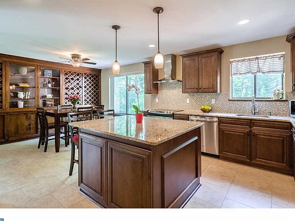 Welcome to this spectacular home in the prestigious town of Voorhees. This Spanish 'Expanded Tesoro' model boasts over 3,200 square feet of living space for your family to grow in! You'll love the stucco exterior surrounded by luscious landscaping and hardscaping on a half-acre wooded corner lot with a fenced in yard. Enter into the soaring tiled foyer and invite your guests into the living room and adjoining formal dining room with outstanding dimensions, recessed lighting and hardwood floors. The heart of this home, is the state of the art kitchen which flows from the family room. The kitchen and breakfast area are sure to impress with walnut cabinetry, flawless granite counters, center island with seating, stainless steel appliances, custom built in wine rack and butler pantry cabinets. Off the kitchen dining area is an enclosed sun drenched 3 season sunroom with a relaxing view of the trees. The step-down family room is spacious but cozy and features a beautiful stone wood burning fireplace with hearth and sliding glass doors leading to the cedar deck into a secluded outdoor getaway, perfect for entertaining and recreation.The first floor also includes an updated half bath, laundry room and a large study with custom built in shelving. The floating staircase leads you upstairs to the enormous master bedroom suite with a walk-in closet, en-suite bathroom and a wood burning fireplace! As you venture to the other 3 bedrooms, you'll notice the ample closet space and great dimensions throughout the entire second floor. Additional amenities include a partially finished basement with bar and gaming area, newer roof, 2016 hot water heater, multi zoned HVAC system and shed. Blue Ribbon Winner E.T. Hamilton Elementary, Voorhees Middle School and Eastern High school buses pull up right on the corner! Here is your chance to own this exceptional home!