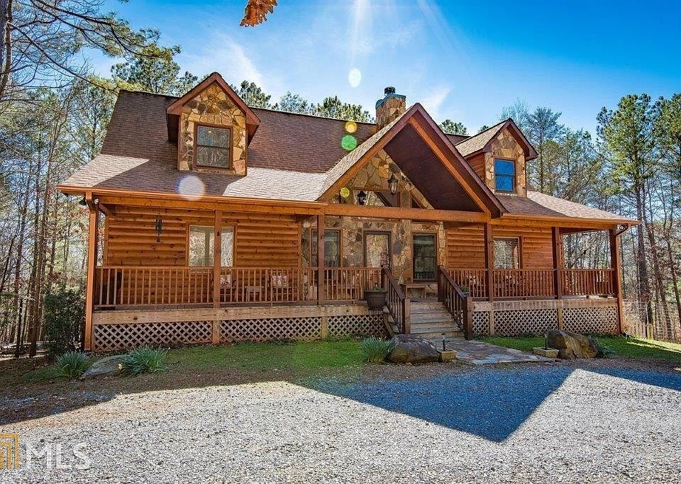 1st Time on the Market! Beautiful, Custom Mt. Home w/large master suite on Main, Large, open GR with Wood burning rock fireplace, Sun Room, Dining Area, roomy kitchen and covered back porch overlooking the private natural landscaped yard w/firepit and area for entertaining. Two laundry rooms - one on main; one on terrace level where there are 3 more bedrooms, full bath, work shop and playroom/game room. This mostly flat 1.38 acre lot offers lots of room for outdoor activities and privacy w/circle driveway and two car garage/ Close to entrance on a paved road inside this beautiful gated community with access to the Cartecay River. Association dues include water and are paid monthly or quarterly. This is a Super Nice Home!!!