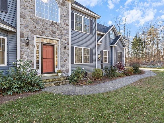 Looking for a stunning custom-built home offering privacy and elegance in Southern NH? This exceptional 4-bedroom property is filled with high-end features. The heart of the home is the gourmet, eat-in kitchen with a slider to the back deck, designed for gatherings both large + small. Granite countertops, Café appliances, and premium cabinetry make this kitchen truly stand out. Adjacent to the kitchen, the family room is a cozy retreat, with a gas fireplace and cathedral ceilings. The formal dining room is perfect for hosting this holiday season. The bonus room offers a perfect office or playroom location off the kitchen. On the 2nd floor you'll find four well-appointed bedrooms, including a primary suite with a luxurious spa-like bathroom and 2 walk-in closets. A convenient laundry room and an additional full bath complete this level. The third-floor bonus room is complete with gym flooring, ready for you to hit your 2025 goals! Outdoors, this property is a gardener’s paradise with numerous perennials, including over 100 spring bulbs, rhubarb, garlic chives, a dwarf fruit cocktail tree, asparagus, and more. The 1.91 acre yard offers ample space for aspiring hobby farmers with areas suitable for gardening and small animals, but can also easily be converted back to a traditional lawn or play space. With features like central air, irrigation, smart lights, a large walk-out basement, and a whole house water system, all you'll need to do is move in. Schedule your private showing!