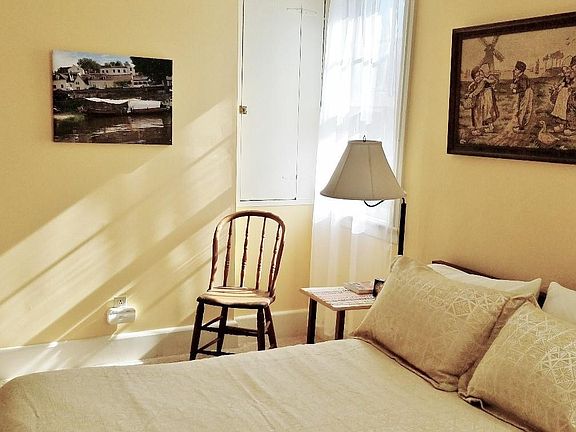 Second floor studio has private entrance, fully furnished with linens, dishware, cookware, TV, wi fi, off street parking. Utilities included. Galley kitchen, 4 foot shower tiled bathroom. Small deck. Walk to village restaurants, shops, waterfront park. Short term rental - Minimum one month $300 security deposit