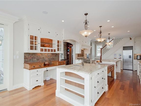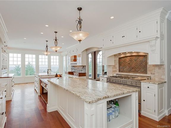 This magnificent mountain-top estate features panoramic views and over seven acres of privacy. Views abound from the great room, stone patio, master bedroom and third-floor tower balcony! Entertain your guests in the open-concept great room with 20' ceilings, antique European chandeliers and a dual-sided stone fireplace. This home's kitchen features custom millwork cabinets, a Bertazzoni gas range, dual sinks, and an oversized island. Whole-home audio and gleaming hardwood floors guide your guests downstairs to your private bar, wine cellar, movie theater and game room. This estate includes 5 bedrooms, 5.1 bathrooms and nearly 7,000 square feet of living space! The master suite features 12' ceilings, two walk-in closets, and a large soaking tub with views of Farmington Valley. The first floor office and full-bathroom ensuite can also be used as an in-law suite. Unique features also include a sunroom, mudroom, first and second floor laundry, on-demand hot water and central vacuum. Located on seven acres of gorgeous land, there is plenty of room to add another garage or create your dream swimming pool! The custom built stone patio offers breathtaking views while enjoying a glass of wine or an intimate dinner party with friends. Located close to West Hartford and Farmington for an easy commute, all while offering privacy and high end comfort that makes this a true dream home.