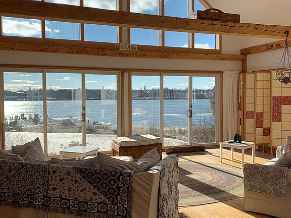This charming little house sits on the Kennebec river overlooking the town of Bath, Maine offering outstanding sunsets against the Bath skyline. Spacious and open living and dining area. Upstairs bedroom is a loft with full bathroom- Jacuzzi tub and laundry. Convenient location, walk to town and BIW is 1 mile. Water views from every room. 10 miles to Bowdoin College. 30 minute drive to Portland. 15-20 minute drive to sandy beaches. Month to month short term rental 2,600 utilities included until May. Weekly rentals through fall. Weekly prices vary. Longer term stays 2300. monthly- not including utilities. Month to month lease.