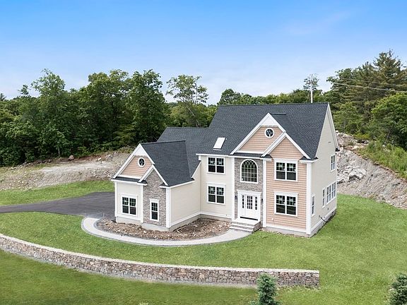 Amberfields Estates welcomes: 25 Field Circle. This Custom Colonial is near completion. At 3,395 square feet and built by one of Wrentham’s premier builders, you will immediately capture the attention to detail with this home’s finishes, custom moldings with vaulted/coffered ceilings, and grand scale spaces. The 2-story great room is centered with a floor to ceiling stone gas fireplace, along side of the large custom kitchen with an abundance of cabinetry. The 2nd level offers 4 bedrooms and 3 full bathrooms, whilst the primary suite also features an office nook and walk-in closet. Complimented by the vaulted ceilings in the primary suite, you will also find the its luxurious bathroom with a soaking tub and tiled-shower nothing shy of grand.
