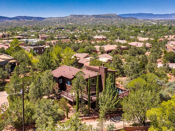 Come enjoy the privacy and views of this hidden, West Sedona retreat. Nestled amongst the trees and enjoying red rock views, this fully updated and renovated home allows for nightly vacation rentals, if desired. Resting on an expansive .38 acre parcel with ample room for expansion or adding a studio or guest casita. Close to town and National Forest hiking and biking yet tucked away in a secluded setting. The inviting interior features a stunning living area; boasting 18 foot ceilings, appealing stone fireplace and dramatic view windows. Completely remodeled at a cost of nearly $200,000 with a spacious kitchen, updated bathrooms and a bright and airy floorplan. Wraparound decks with red rock views embrace outdoor living from this private perch. Awaiting your most discriminating inspection!