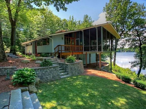 Extraordinary lakefront "Deck home" on Big Spectacle Pond. Rare opportunity to reside on 4.1 private acres with over 240 of shoreline on this fully recreational, clean lake. Majestic tree-line lake views in nearly every room through the oversized custom windows. Inside you will find all the amenities of the modern "Deck House" design including gas fireplaces, a tranquil enclosed sun porch, cathedral ceilings, exposed beams, custom trim, high-end finishes, built-in wet bar and a Thermo-Spa hot...