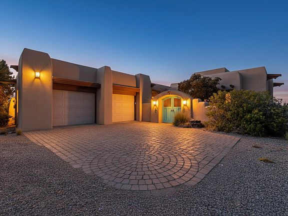 This stunning Placitas home offers more than 3,000 sf of living space w breathtaking views and unforgettable sunsets from every window. Perfectly situated on over 2 acres, the property blends comfort, style, & function with a serene desert setting.Inside, you'll find Saltillo tile (no carpet!), radiant heat, & refrigerated air. The thoughtfully designed layout includes a built-in dry bar, wine fridge, programmable & motion-sensor lighting, & spacious rooms filled with natural light.The heart of the home extends outdoors, where a relaxing backyard retreat awaits. Enjoy a covered patio with seating, cozy kivas, & fireplace -- ideal for entertaining or quiet evenings under the stars. This is the Placitas lifestyle at its best -- space, views, & timeless Southwestern charm!