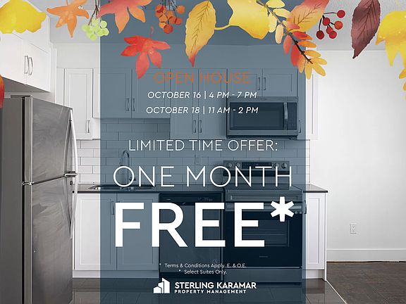 - Special offer! Limited Time Offer | Enjoy 1 Month FREE on a 13-Month Lease!* (Select Suites Only) - Limited Time Offer | Enjoy 1 Month FREE on a 13-Month Lease!* (Select Suites Only)