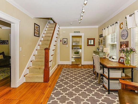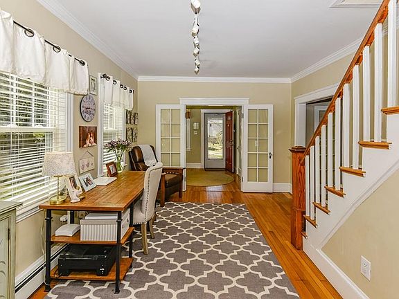 When they say "home sweet home" they are talking about 25 Fleming! Starting with the sweet front porch, this home is just full of fantastic details. Welcoming entry hall with great coat closet, French doors from the entry to the office and also from the living room to the playroom, dining room with built in cabinetry, hardwood floors and crown moldings, a modern kitchen with white cabinets and corian counters, a full bath, mudroom and laundry complete the main level as you walk out to the private patio with hook-up for a gas grill. The second floor features three bedrooms, including a master with walk-in closet, and a full bath with double sink. Plenty of storage space in the basement. Fabulous yard, plus a great shed. Easy commuter location for driving or commuter rail. This home is one sweet offering! Showings by appointment, with social distancing precautions observed.
