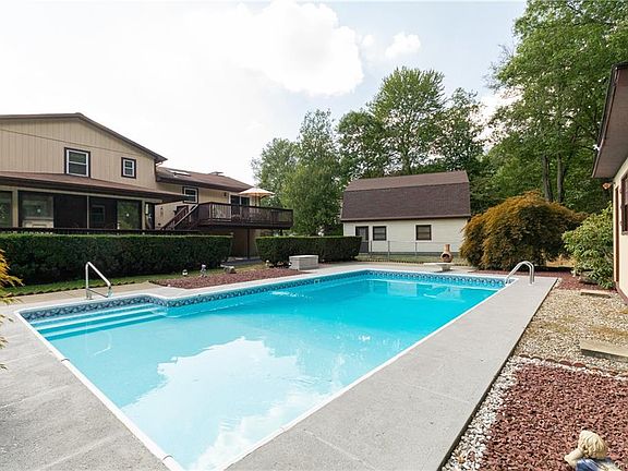 This very unique 3 bedroom 2 bath split level home in the beautiful Watch Hill Subdivision is waiting for its new owners to come enjoy the space. The top level has 3 good size rooms and a full bath off the hallway. The main level has a very bright and spacious living room, with a working fireplace. Eat in Kitchen w/granite counters, new refrigerator and microwave. Formal dining room with sliding glass doors to a large open deck. When you go down to the third level you will find a great family room area with a second working fireplace, bar area and sliding glass doors to the fantastic three season room. The fourth basement level is fully finished, laundry facilities and a bonus room. Take a walk around outside and you have an oversized 2 car detached garage. Above the garage is an additional 500 square foot loft area, can be a great game room, at home office or just storage space if that is what you need. The backyard houses a fantastic in-ground pool with brand new liner! A small cabana houses the pool mechanics and provides storage for pool floats during the season and outdoor furniture in the off season. The gorgeous three season room adds to the beauty of the inside and outside areas. With 4 sets of sliding glass doors and a ceiling fan it can be a great open air area on those great summer days and when the weather starts to cool it's a great place curl up under a blanket and read a book or just enjoy the view. The surrounding exterior decking connects the 3 season room to the upper level deck area. This house has been home to the current owners for over 30 years but now it's time for someone else to come make this house their home. The updating or reconfiguring possibilities are endless!