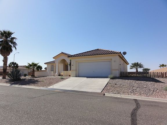 Can you imagine this mountain view every sunrise and sunset? This beautiful home features an open concept. Kitchen has an island w/ breakfast bar/pantry cabinets/butler quarters. Beautiful crown molding in the formal dining room. Separate laundry room w/ sink and storage. Spacious Master Bed & Bath w/ a deep Tub/shower combo. Massive yard w/ desert landscaping! * RV PARKING * ONLY A 30 MINUTE DRIVE FROM BULLHEAD CITY