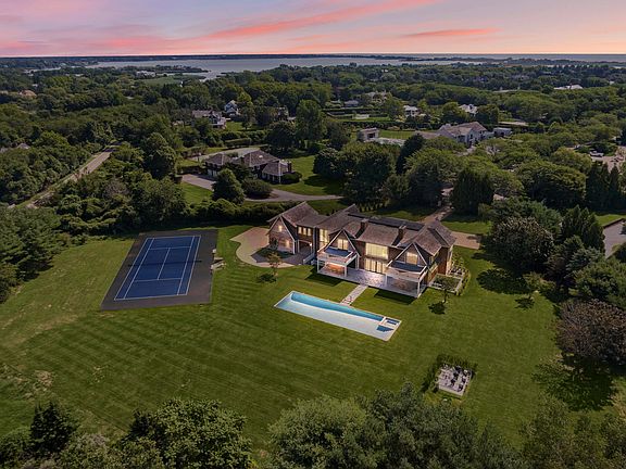 AUCTION: BID 12-25 SEPTEMBER. Listed for $19.995M. Starting Bids Expected Between $10M-$15M.Surround yourself with the refinement of the Hamptons with deeded access to one of the country's best private beaches. Once part of Henry Ford II's sprawling Southampton estate, the never-lived-in 25 Fordune Court offers high-end finishes and a prestigious address with close proximity to the ocean. Designed and built on spec by McDonough & Conroy Architects, this newly constructed estate drips with fine materials, such as marble and oak. The private, three-acre oasis at the end of a quiet cul-de-sac exemplifies liveable luxury, to be enjoyed year-round. Lofted proportions, paneless windows, and a serene palette of light and medium tone wood, bright white, and matte black imbue the interior with an elegant and transitional style. Paneless glass frames the verdant landscaping, so this property's enviable setting never goes unnoticed. A luxurious kitchen opens to the two-story great room, creating the ultimate space to entertain. A glass wall in the great room opens fully to the terrace, letting guests meander throughout the property.