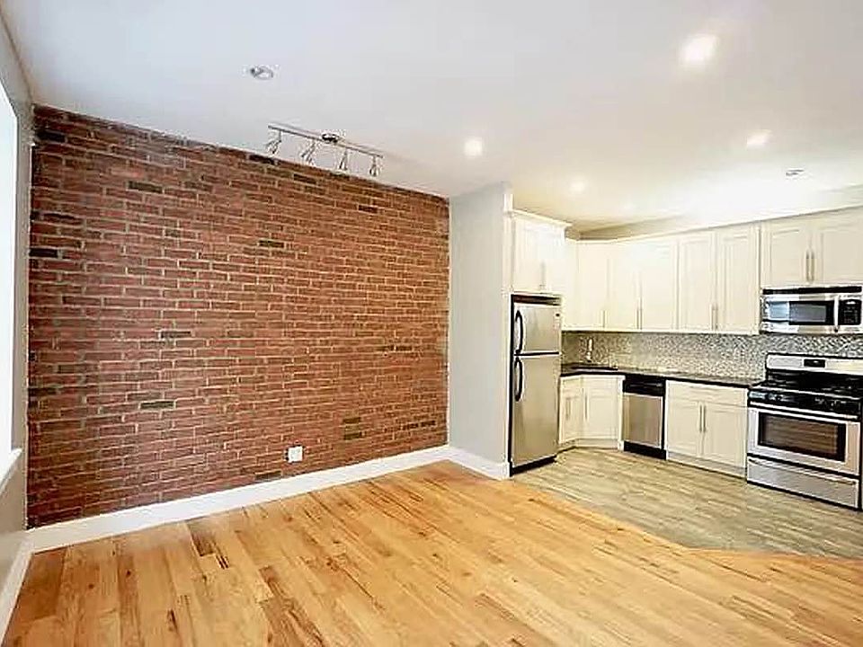 Exposed brickGreat natural lightStainless steel appliancesHardwood floors