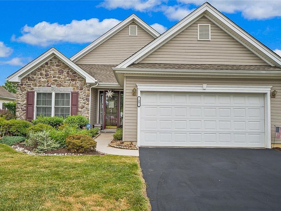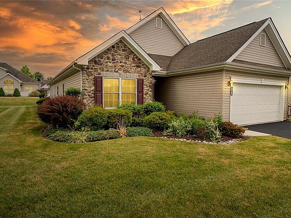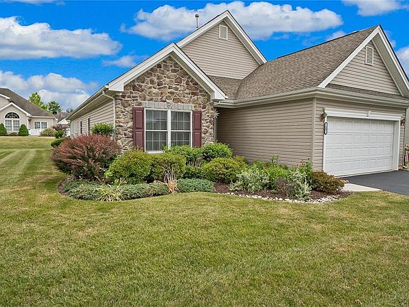Desirable 55+ community Highlands at Glenmoor SINGLE now available. This home offers 2 large bedrooms and 2 full bathrooms with over 1700 sqft. Open concept layout with an easy to manage ranch style home. Kitchen is top of line with granite counters, ample storage and tile flooring. Home offers an expansive walk up storage over the two car garage, central vac. system, and a patio off the sunroom with retractable awning. HOA Community has a well-equipped clubhouse with a fitness center, aerobics studio, social rooms, ballroom, card room, crafts room, library, business center, and a fully stocked kitchen for events or making a quick meal with friends. A pool and patio are on hand for summer months, as well as, tennis, bocce, and shuffleboard courts. HOA also covers all snow removal to the front door, as well as exterior landscaping and maintenance.