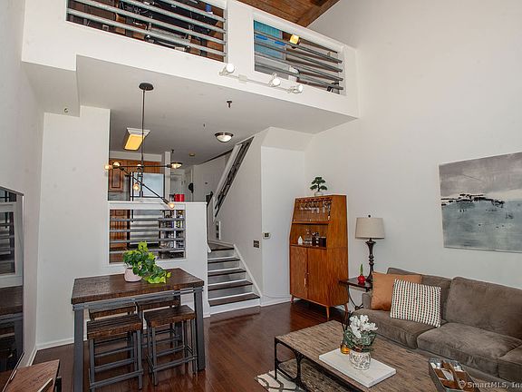 Come home to the Clocktower Close, a highly sought-after condo complex offering a prime location with easy access to I-95, the Merritt Parkway, Metro-North, Merritt 7, and vibrant SoNo. This 825 sq ft loft unit, with its chic Manhattan-inspired atmosphere, features stunning exposed brick walls, wood beams, soaring 20-foot ceilings, and dramatic two-story windows that flood the space with natural light. The owner has thoughtfully updated the space with hardwood floors on both levels, a refreshed kitchen complete with quartz countertops, marble backsplash, and a new dishwasher. The half bath has been upgraded with a new quartz counter, sink, and modern hardware. The open floor plan is accentuated by interior balconies that enhance the loft's distinctive NYC vibe. Natural light pours in through the expansive two-story windows, creating a bright, welcoming atmosphere throughout. Permitted off-street parking,on-level laundry,renovated fitness center with locker rooms and sauna,dedicated dog walking area,outdoor picnic spaces, community kitchen and business flex spaces,game room, secured parking garage available. In addition to a great community complex, you'll enjoy resident-only beaches, waterfront parks, and a wealth of dining, shopping, and entertainment at your fingertips. Whether it's a morning commute, a weekend stroll through SoNo, or a sunset by the water, this loft places it all within easy reach. Great opportunity - must see! Agent is related to the owner