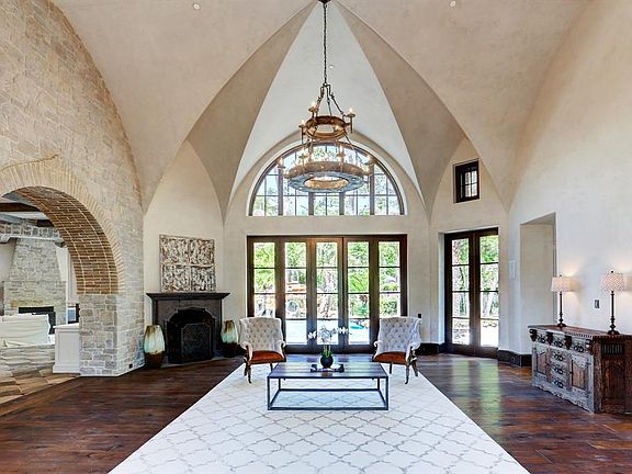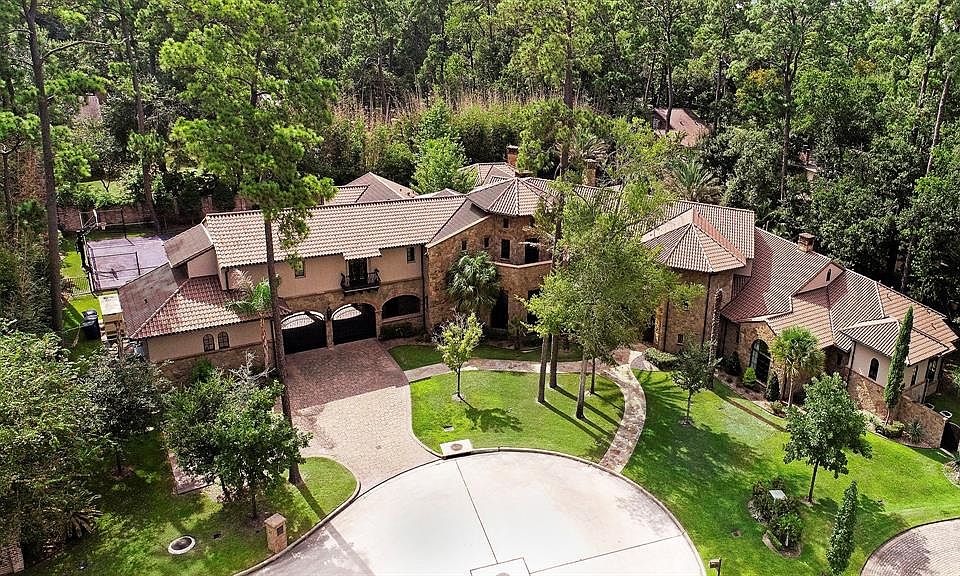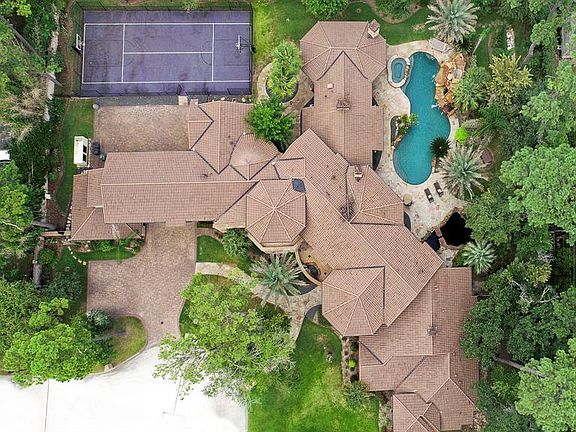 Robert Dame designed masterpiece in Bunker Hill Village built by award winning Abercrombie Builders. Majestically situated on over an acre in a secluded cul-de-sac with resort-style backyard & sports court. The grand living room is the heart of the home with two-story groin vault ceiling. Wood paneled library with wet bar, two studies with built-ins, caterer's kitchen. Master bedroom & guest suite located on the first floor. Game room, theater & four additional bedrooms located upstairs.
