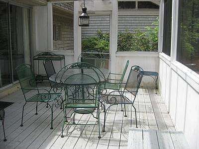 Very private location in Bright Coves. This contemporary home with hardwood floors, soaring cathedral ceildings and lots of glass, is a perfect summer get-away or year round home. Nestled in the pines is an enclosed "Japanese" style hot tub. The dining room has a built-in server and home features built-in bookcases in the living room.