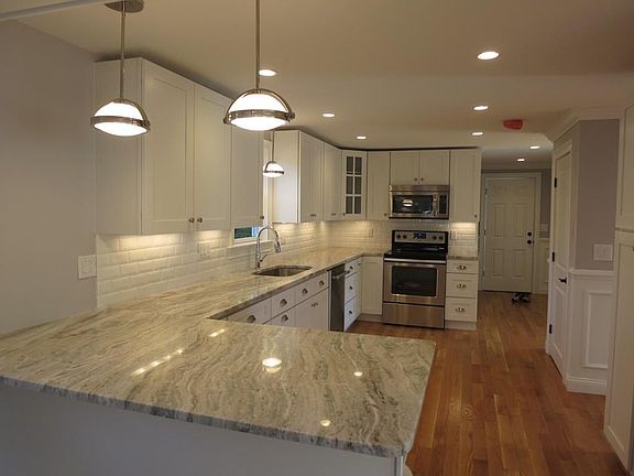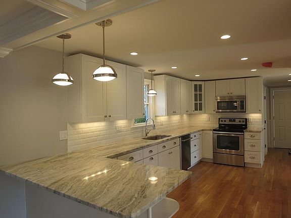 New price , The owner will now consider offers in the $425,000 to $435,000 price range. Over the top high end rehab in established neighborhood near schools, shopping , hospital , minutes to rte 495 . Top to bottom , inside and out its all been done over. New custom kitchen cabinets , Quartzite counters, white oak floors, crown moldings, dining room coffered ceiling, custom arches, solid core doors with satin hardware,new Statuario marble master bath with Hansgrohe fixtures, 1st floor laundry room, high efficiency HVAC, , new roof, siding ,new Pella windows, foam insulation, PVC trim , 200 amp electrical service, patio.
