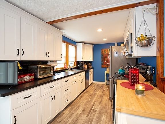 This updated ranch is a great opportunity to move into town and enjoy a home that won't break the bank! You get parking, privacy and a perfect commuter's location. Features include updated kitchen with brand new flooring and stainless-steel appliances from 2018, remolded bath with tile flooring and shower 2018, updated electric with 200-amp service 2018, newer roof and front stairs 2014, gas hot water heater 2017. Fireplaced living room with light and bright bay window, hardwood flooring and wall mount television. Main bedroom with hardwood flooring, ceiling fan and two good size closets. Large usable attic storage space with pull downstairs. Fenced in yard composite deck and storage shed complete the outdoor space. This home sits on a dead-end street with a walking path through a wonderful, wooded area. Looking for your first home or a great retirement spot this property is a great alternative to a condo!